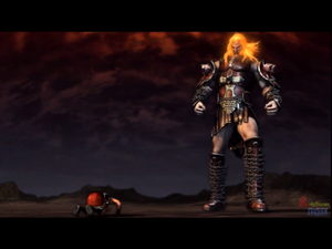 The final battle and a potentially frustrating one. The fight is a tug of war between both fighters as they try to fill their own bar at the expense of the other, this leaves ample room to recover for both parties. However, Kratos has neither Magic nor Rage meter and his attacks with the Blade of the Gods are far simpler than Ares' attacks which are more complex and far more devastating. Ares' new attacks include a sword combo that can be blocked. His own version of Army of Hades which can be blocked as well. A magic attack in which Ares will teleport before summoning 4 giant rocks which will collide and explode, which cannot be blocked. By far his worst attack is a hand blast that cannot be blocked and will leave Kratos stunned, which is always followed by a claw multi hit attack which Kratos will not be able to evade or block while stunned resulting in unfair one-sided damage that can let Ares gain a lot of advantage or regain a lot of his own lost gauge. In higher difficulities this combo can instantly turn the tide of the battle or be an instant kill. Ares will continuously run towards the player which is almost always either a sword combo or a hand blast. He will periodically roar after using some of these attacks.